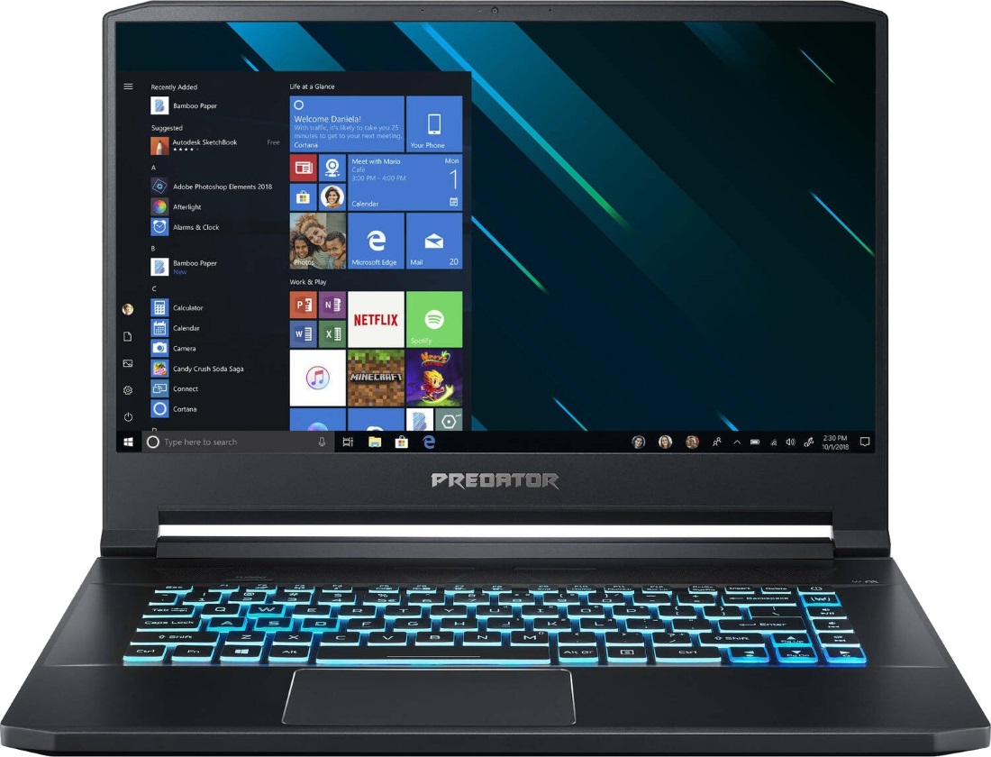 Acer Predator Triton 500 — это очень дорогой, очень мощный, отлично оснащенный тонкий ноутбук с 15-дюймовым дисплеем с частотой обновления 144 Гц. Мечта любого игрока и флагман в линейке игровых ноутбуков Acer 2019 года. Он оборудован мощным шестиядерным процессором Core i7 с поддержкой многопоточности, роль графического адаптера выполняет околотоповая видеокарта NVIDIA GeForce RTX 2060 Max-Q, объем оперативной памяти составляет 16 ГБ, а в качестве хранилища используются ну очень быстрый PCI-E SSD-накопитель на 512 ГБ. Рассуждать здесь особо не о чем, для игры в FullHD разрешении и максимальных настройках графики такой начинки с запасом хватит еще на несколько лет.