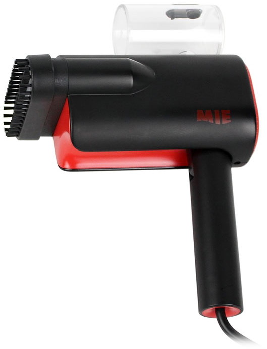 Дебютант лета 2020 года от бренда MIE — ручной отпариватель одежды, который характеризуется небольшим весом (800 грамм) и повышенным удобством при хранении и/или транспортировке. Последняя особенность во многом связана с небольшими габаритами и наличием складной ручки, прижимающейся к корпусу: аналогичный механизм предусматривают многие дорожные фены.