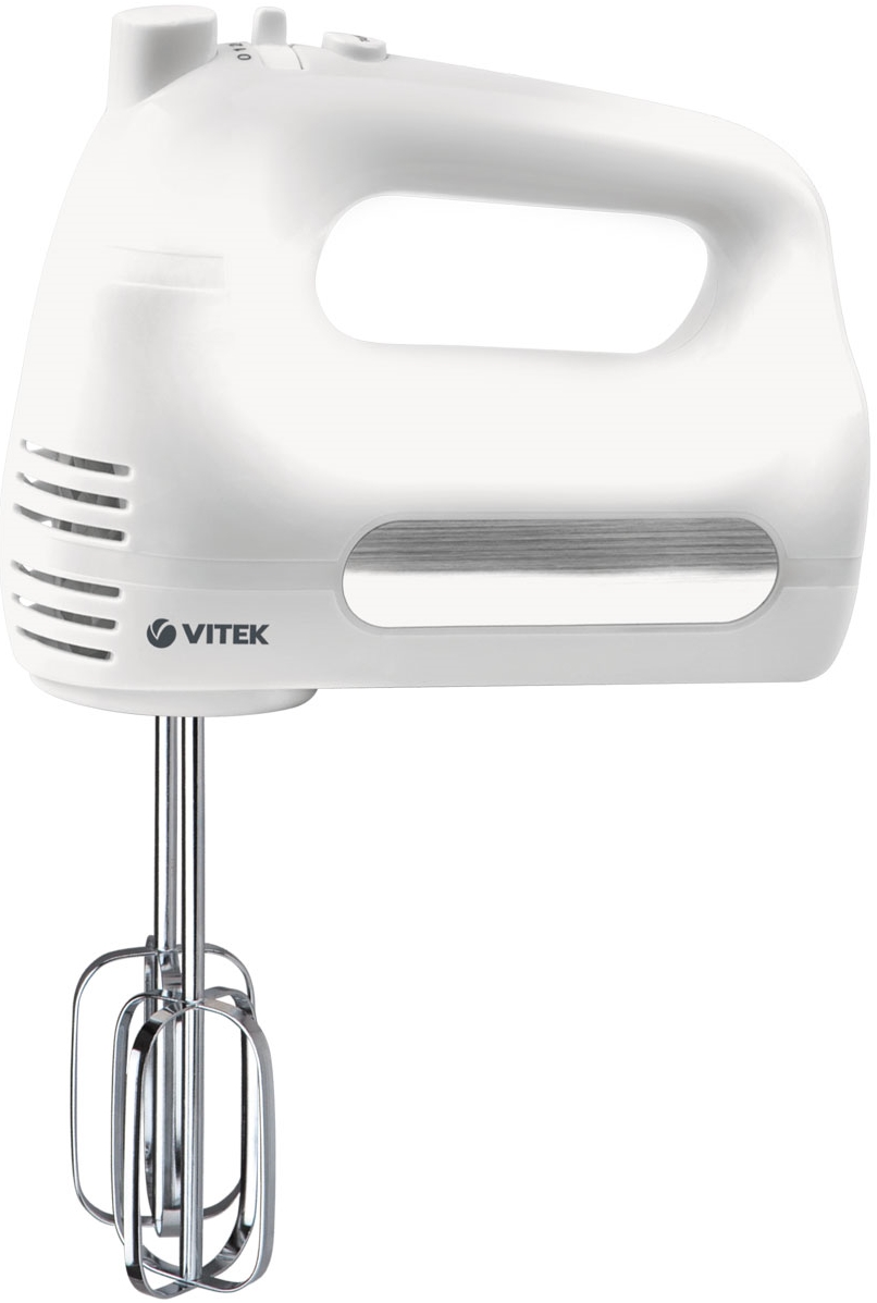 Миксер Vitek VT-1426 относится к бюджетным товарам, но при этом имеет все необходимые функции для приготовления любых блюд. В первую очередь, его мощность составляет 500 Вт, и этого достаточно для того, чтобы быстро взбить и яичные белки, и тесто, если вы готовите на семью. Для профессионального использования на дому лучше выбрать более мощную модель — например, Vitek VT-1424.