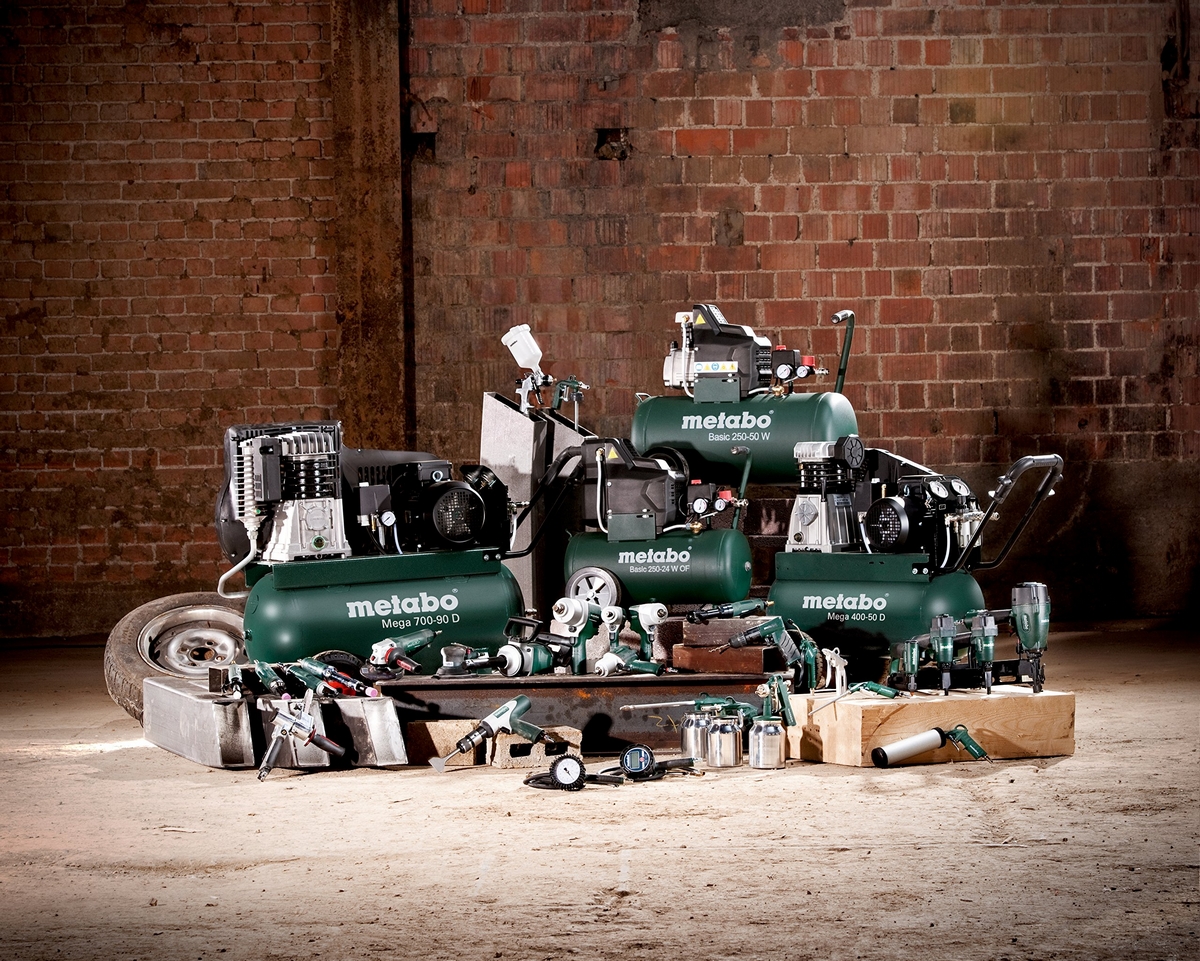 Немецкая компания Metabo сделала имя на качественном и надёжном инструменте самого разношерстного предназначения. Под применение в непрофессиональных бытовых условиях заточена модель компрессора BASIC 250-24 W.
