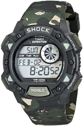 В качестве опции часы Timex отображают мировое время для предварительно заданного часового пояса. Ремешок к модели идет под стать камуфляжному корпусу, он изготавливается из каучука и оснащается классической застежкой с пряжкой. В сухом остатке перед нами предстают уравновешенные недорогие часы для спортсменов и любителей активного досуга.