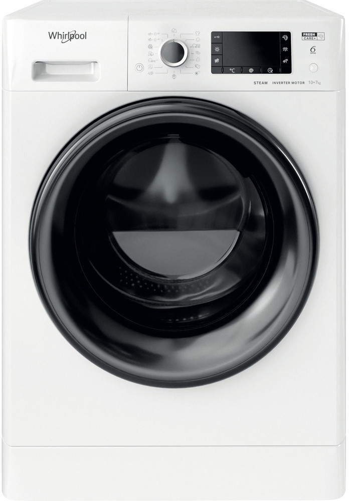 Отдельностоящая стирально-сушильная машина Whirlpool FWDD 1071682 WBV, обладающая просторным барабаном на 10 кг сухого белья, станет отличным помощником для большой семьи. Модель относится к удачной серии автоматов FWDx, которые имеют функцию освежения паром и оснащены сушилкой на 7 кг белья. Белый корпус агрегата контрастирует с черным ободом загрузочного люка большого диаметра. Компактная панель управления состоит из черно-белого светодиодного дисплея, 2 функциональных кнопок и поворотного селектора программ стирки (14 шт.). В числе наиболее интересных циклов 2 программы с обработкой белья паром SteamCare и FreshCare+ (загрузка до 2 кг), быстрая 30-минутная стирка, а также эко стирка при температуре 20 °С. Кроме того, можно активировать только сушку белья, пропустив цикл стирки.