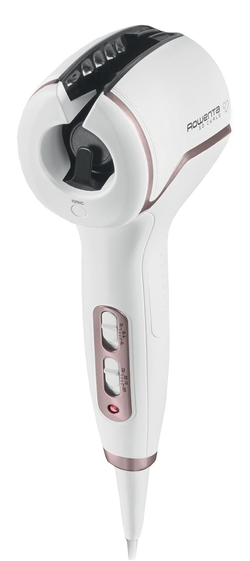 Плойка компании Rowenta оснащена нагревательным элементом диаметром 23 мм для создания как легких волн, так и структурированных кудрей, причем благодаря этой самостоятельной помощнице на создание укладки понадобится всего 10 – 15 минут. А благодаря гибким настройкам можете рассчитывать на индивидуальный результат: четыре режима времени завивки (6, 8, 10 и 12 секунд) позволяют выбрать плотность готового локона, а три температурных режима (170, 200 и 230 градусов) — подобрать оптимальный нагрев в зависимости от типа волос. В результате получается 12 комбинаций, хотя все же не хватает регулировки направления движения. Производитель уверяет, что плойка автоматически меняет направление, но лучше бы это можно было настроить вручную.