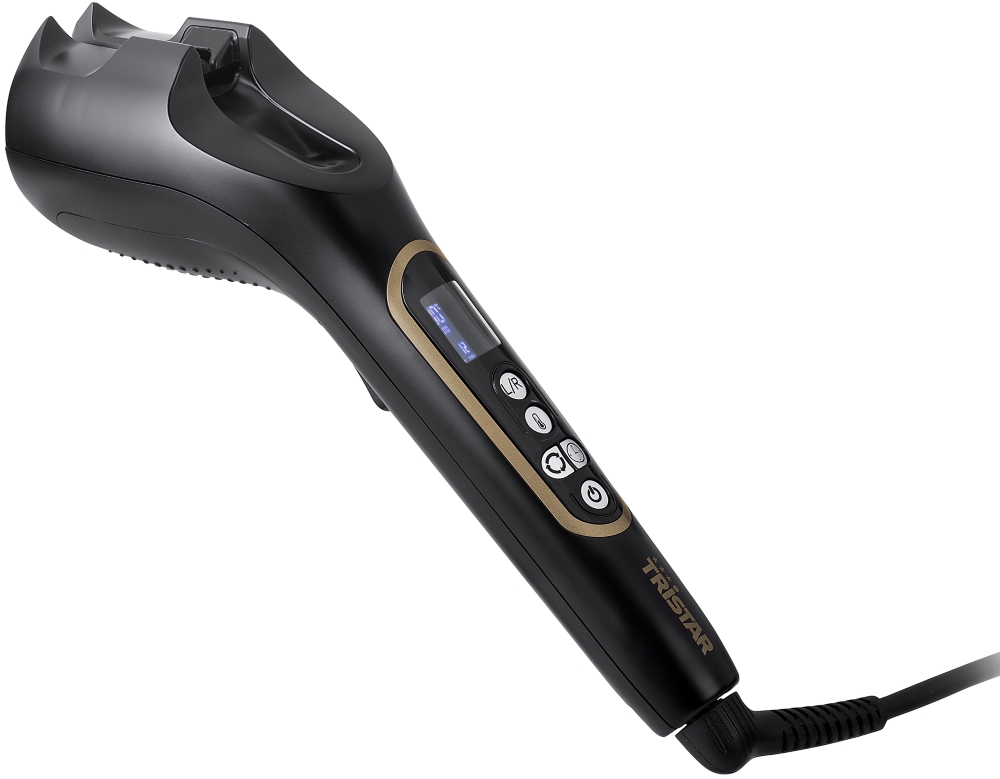 TRISTAR HD-2399 — это автоматическая плойка, которая в первую очередь подкупает своим невысоким ценником, а после покупки — многофункциональностью. Здесь есть все, что предлагают более дорогие модели, в том числе многочисленные настройки, позволяющие подобрать оптимальные значения под определенный тип волос и желаемый эффект. Во-первых, температура регулируется в диапазоне от 130 до 230 градусов. Однозначно, плюс в том, что есть как достаточно низкая, так и высокая температура, поэтому выбор необходимого нагрева не станет проблемой. Во-вторых, вы сможете настроить время завивки — от 5 до 12 секунд. Чем выше это число, тем более упругими будут локоны. В-третьих, чтобы укладка выглядела более естественно, плойка предлагает выбрать направление движения: влево, вправо или автоматически. Кстати, диаметр нагревательного элемента составляет 25 мм — пожалуй, это наиболее универсальное значение, так как подходит для разной длины волос и формирует не слишком мелкие кучеряшки, но и не легкие волны, которые рискуют распасться уже через несколько часов.