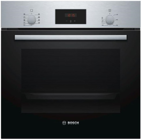 Духовой шкаф пополнил линейку Serie 2 2022 года, то есть представляет когорту решений эконом-класса компании Bosch. Несмотря на свой статус модель может похвастать качественным трехслойным остеклением дверцы, что снижает вероятность случайных ожогов при касании лицевых поверхностей прибора. Также Bosch HBF 134ES1 получил сенсорную панель управления с защитой от детей и два поворотных переключателя — для настройки температур и выбора режима.