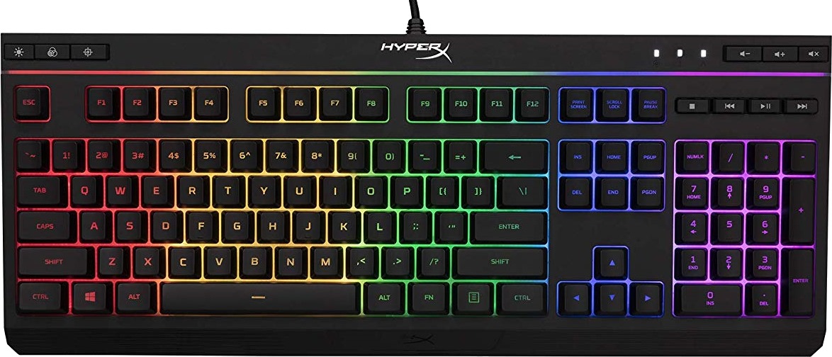 Клавиатура HyperX Alloy Core RGB обладает продвинутой конструкцией, которая обеспечивает комфорт, безопасность и даже хорошее настроение. В глаза сразу бросается премиальный внешний вид, что является заслугой качественного матового пластика. Несмотря на стандартный форм-фактора без металлической базы, вес превышает 1 кг. Модель соответствует игровому направлению, и порадует ценителей тихих и мягких мембранных клавиш с минимализмом в плане настройки, так как поддержки софта не предусмотрено. 10 дополнительных кнопок помогут с управлением громкостью, переключением треков, активацией игрового режима и подсветки. Последняя разделена на 5 зон с возможностью независимой настройки и предлагает несколько визуальных эффектов, регулировку яркости и скорости.
