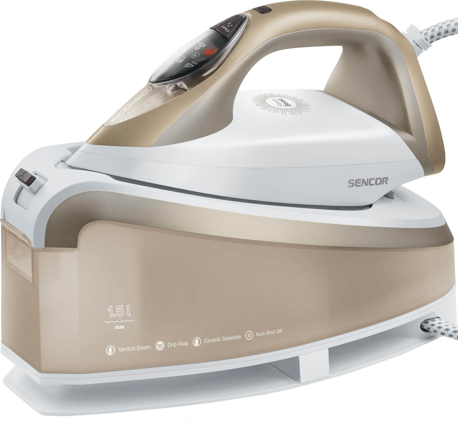 Утюг компании Sencor имеет сбалансированное соотношение стоимости и качества, предлагая высокую производительность, качественные материалы и эффективную работу по приятной цене. Обладая мощностью в 2400 Вт, он быстро нагревается (готовность к работе уже через 35 секунд после включения) и обеспечивает высокую интенсивность парообразования — до 130 г/мин при постоянной подаче пара. В случае плотных тканей и сложных складок есть возможность использовать кратковременный, но более мощный паровой удар (395 г/мин). С такими показателями утюг способен легко заменить вертикальные отпариватели и быстро освежить не только висящую на вешалке одежду, но и шторы. В то же время технология Anti-Drip предотвращает вытекание воды, благодаря чему риск появления мокрых пятен на ткани сведен к минимуму.