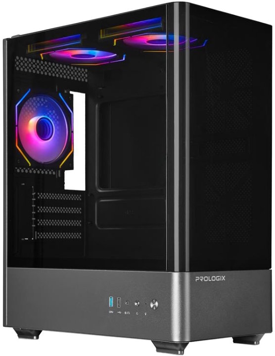 Компьютерный корпус PrologiX Lumi представлен в трендовом форм-факторе аквариума, но при этом выделяется бюджетной стоимостью. Стеклянные панели (передняя и боковая) обеспечивают панорамный обзор комплектующих и дизайнерской визуализации. Компактная конструкция ориентирована на стильный ПК для домашних повседневных задач и гейминга среднего уровня. Ограничения коснулись высоты кулера процессора (до 160 мм). Организовать эффективный воздушный поток можно за счет 7 посадочных мест под вертушки 120 мм. В набор включены 3 вентилятора с ARGB подсветкой, а комплектный HUB-контроллер позволяет объединить систему охлаждения для централизованного управления оборотами и синхронизировать визуальные эффекты.