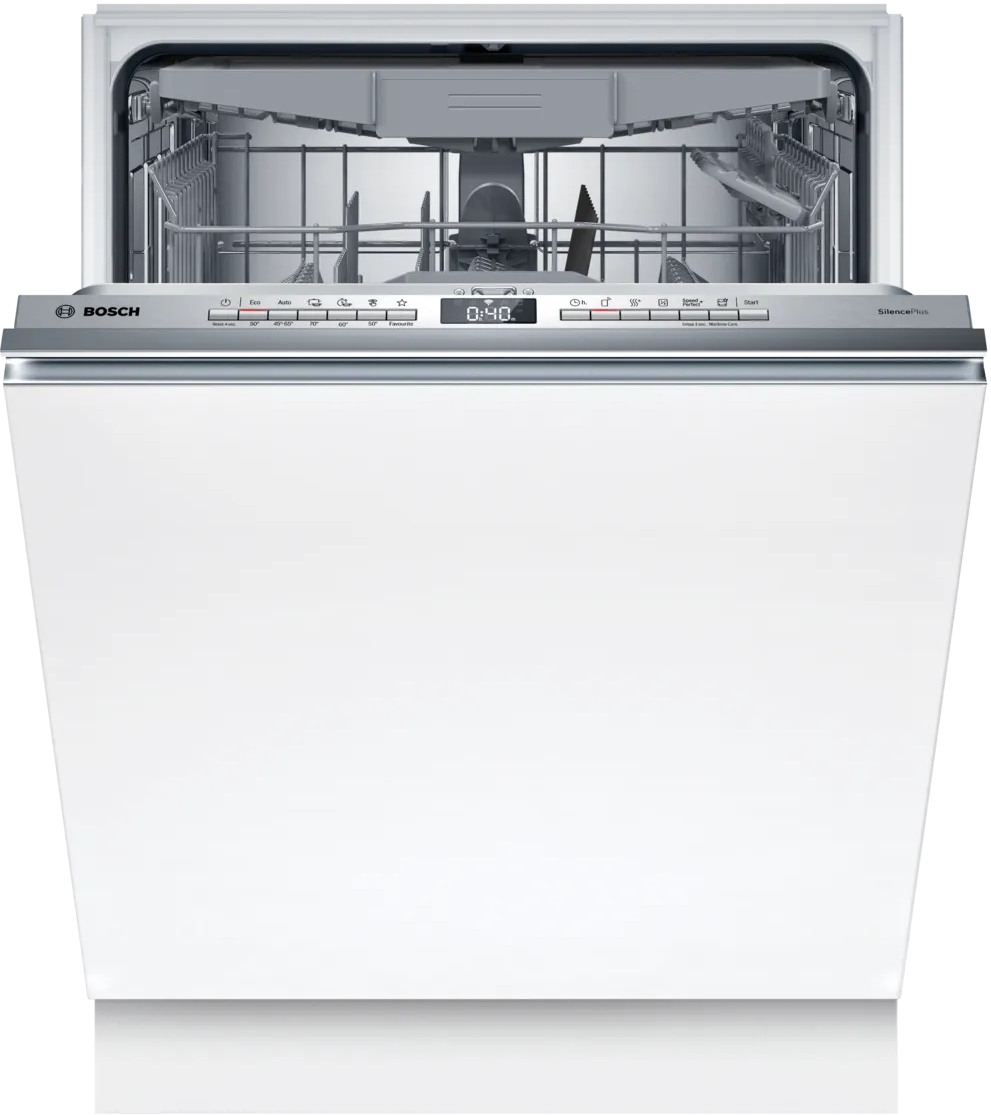 Умная полновстраиваемая посудомойка из лиги Bosch Serie 4 оптимально подходит на просторную кухню и способна в одночасье эффективно вымыть до 14 комплектов посуды.