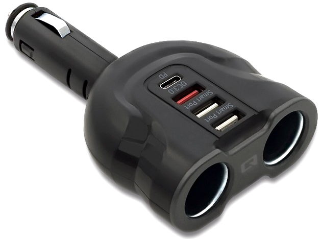 Модель предоставляет в пользовательское распоряжение одно сквозное гнездо прикуривателя и трио USB-портов. Один разъем — это полноразмерный USB A, обеспечивающий ускоренную зарядку подключенных девайсов мощностью до 30 Вт по протоколу Quick Charge 3.0. Еще два USB-порта являются симметричными type C и тоже выдают по 30 Вт мощности (по стандарту Power Delivery 3.0).