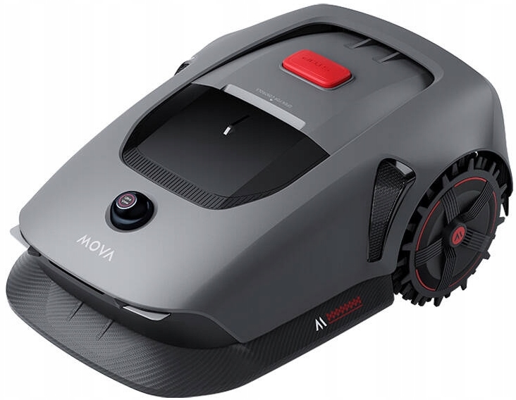 Газонокосилка Mova 600 имеет стильный корпус с отделкой под карбон (как у гоночного автомобиля). Под верхней панелью скрываются кнопки управления и поворотный регулятор для настройки высоты кошения травяного покрова (от 20 мм до 60 мм). Встроенная батарея имеет емкость 2.5 Ач (заряда хватает примерно на 90 минут работы без возвращения на станцию). За один час работы газонокосилка успевает подстричь около 80 м². Благодаря низкому уровню шума (не больше 59 дБ) робот, даже работая в воскресенье утром, не потревожит домочадцев и не вызовет неудовольствия соседей. Высокий уровень защиты от воды и влаги (IPX6) позволяет использовать струю воды из садового шланга, чтобы смывать остатки растительности с режущей системы и внутренней поверхности корпуса после завершения стрижки.