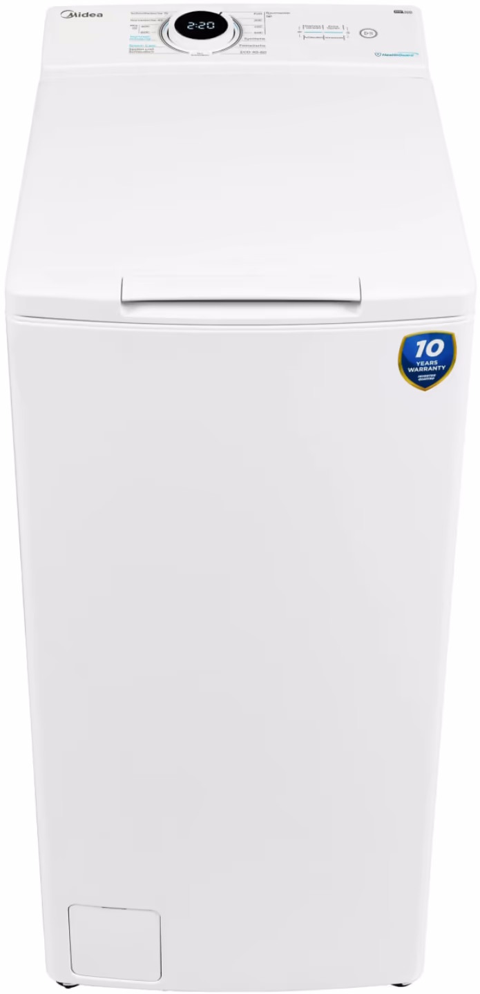 Примечательным вариантом недорогой стиральной машинки вертикального форм-фактора с инверторным управлением послужит компактная модель Midea MF100T60B/W-UA.