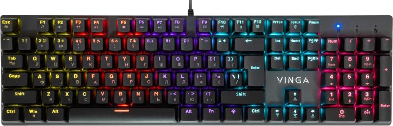 Клавиатура Vinga KBGM101 с механическими переключателями от компании Outemu выделяется бюджетной стоимостью, что ориентирует ее на геймеров-новичков и пользователей, желающих опробовать характерную динамику нажатия в домашних условиях. Красные свитчи относятся к линейному типу и требуют минимум усилий для активации, поэтому максимально похожи на мембранный тип и вызовут минимум дискомфорта во время привыкания. Преимуществом Red Linear также считается малошумность, что оценят окружающие как в офисе, так и дома. Срок службы достигает 50 млн нажатий — хороший показатель для бюджетника. Полноразмерная компоновка клавиш позволяет осваивать все игровые жанры, работать с текстом и цифрами. Правда, делать это придется в стационарных условиях, так как размеры и несъемный кабель мобильности не способствуют. Несмотря на наличие стабилизаторов, пробел получился немного шумный, хотя эта проблема встречается и в более дорогих брендовых моделях.
