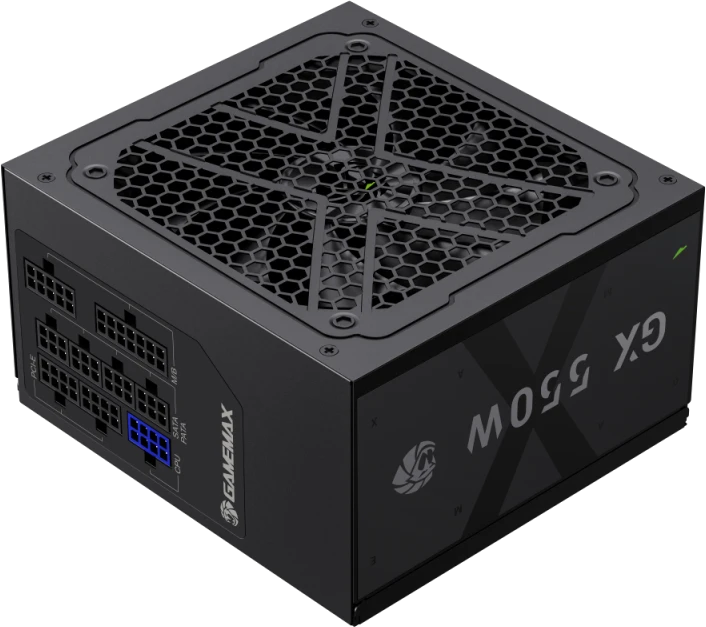 Блок питания Gamemax GX 550GF предлагает надежную радиоэлектронную базу, которая соответствует высоким стандартам и обеспечивает длительную эксплуатацию без сбоев и рисков для оборудования. Схема питания с активной PFC позволяет добиться высокого КПД 92% и выдавать 540 Вт на основную линию +12 В при общей заявленной мощности 550 Вт. Возможностей БП достаточно для работы офисного и домашнего ПК, ориентированного на гейминг начального уровня, продвинутую обработку видеоконтента, взаимодействие со специализированным дизайнерским софтом, создание собственного медиасервера. Модель успешно прошла тестирование и получила сертификат 80+ Gold. Учитывая доступную стоимость, блок питания является перспективным вложением в долговечное и безопасное функционирование компьютера в любой ситуации. Производитель позаботился о всесторонней защите от нестабильного электропитания, общей и локальной перегрузки по току и напряжению, холостой работы, перегрева, короткого замыкания.