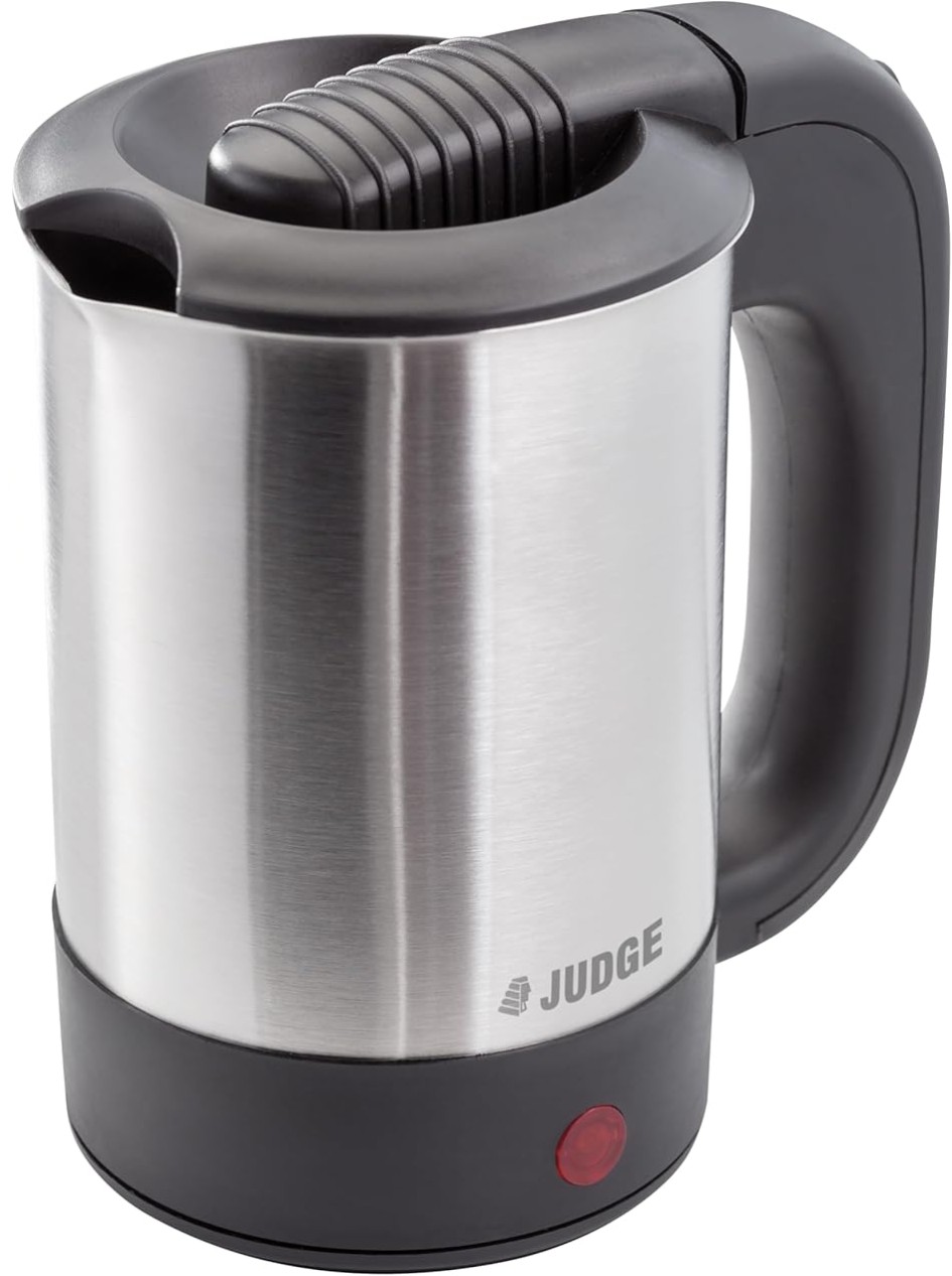 Электрочайник Judge JEA33 разработан для комфортных путешествий, рабочих поездок и других выездных мероприятий. Модель объемом 0.5 л рассчитана на двоих пользователей и обеспечивает кипятком в кратчайшие сроки благодаря мощному закрытому нагревателю 1000 Вт. Классическая конструкция с литой ручкой отличается надежностью и эргономикой, а использование комбинации пластика и металла в корпусе гарантирует безопасность перевозки в чемодане или рюкзаке. К преимуществам устройства можно отнести кнопку для открытия крышки, что упрощает залив воды в емкость. Электрочайник комплектуется двумя чашками из термопластика, которые не деформируются от кипятка. Производитель предусмотрел все аспекты дорожного и домашнего применения и требует за товар минимальную стоимость.