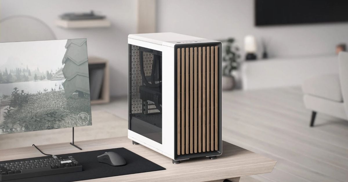 Fractal Design North — стильный шведский корпус с передней панелью из натуральной древесины. В зависимости от цвета корпуса Charcoal Black или Chalk White, применяется орех или дуб. Все панели корпуса легко снимаются для удобства сборки ПК, а боковая сделана из сетки. Это хороший компромисс между видимостью внутренних компонентов и их вентиляцией.