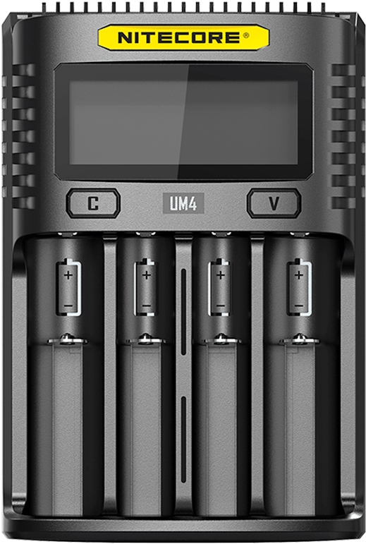 Интеллектуальное зарядное устройство Nitecore UM4 может одновременно заряжать до четырех элементов питания и допускает установку зарядных параметров вручную для каждого из слотов по-отдельности.