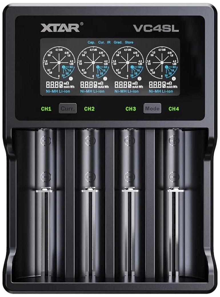 XTAR VC4SL — четырехканальное зарядное устройство продвинутого ранга с полностью обособленными слотами, в которые помещаются аккумуляторы длиной до 78 мм.