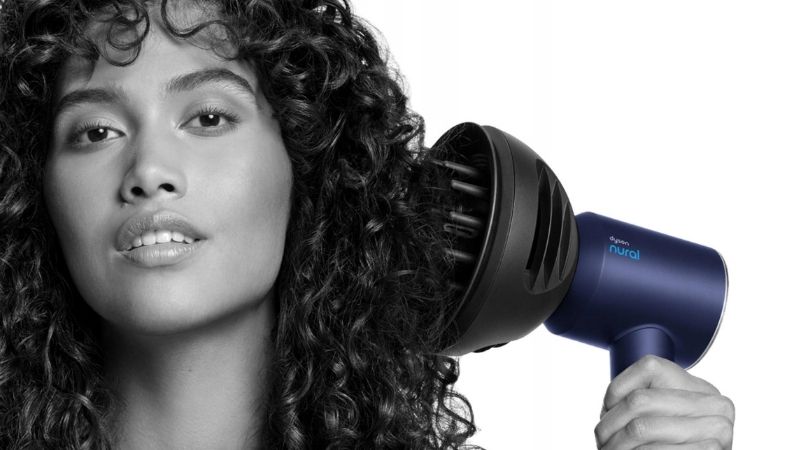 Одним выпрямителем компания не ограничилась и разработала Airstrait — устройство 2-в-1, объединяющие в себе функции фена и утюжка. Внешне прибор напоминает классические стайлеры, но, в отличие от них, вместо сдавливания пряди между раскаленными пластинами использует для выпрямления направленный поток горячего воздуха. Он подается под углом 45°, создавая натяжение, необходимое для выравнивания прядей с меньшими повреждениями. В основе лежит двигатель Hyperdymium, который и обеспечивает высокое давление воздуха. Благодаря этому волосы не контактируют с раскаленными пластинами, а значит — меньше травмируются во время укладки.
