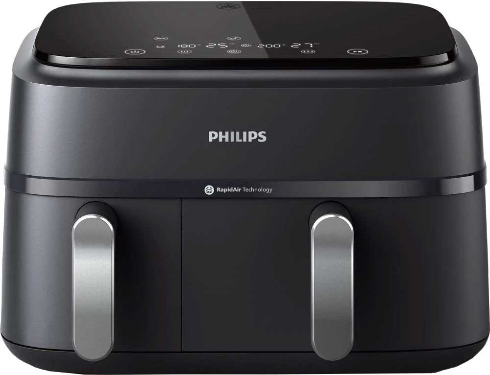 Мультипечь из серии Philips 3000 относится к среднему ценовому сегменту и станет хорошим помощником на кухне, где готовят часто и много. Обладая мощностью в 2750 Вт, она обеспечивает быструю готовку, а фирменная технология Rapid Air Plus — циркуляцию горячего воздуха внутри и равномерное пропекание продуктов. Благодаря этому еда остается сочной внутри и обретает аппетитную корочку снаружи, и все это с минимальным использованием масла или вообще без него.