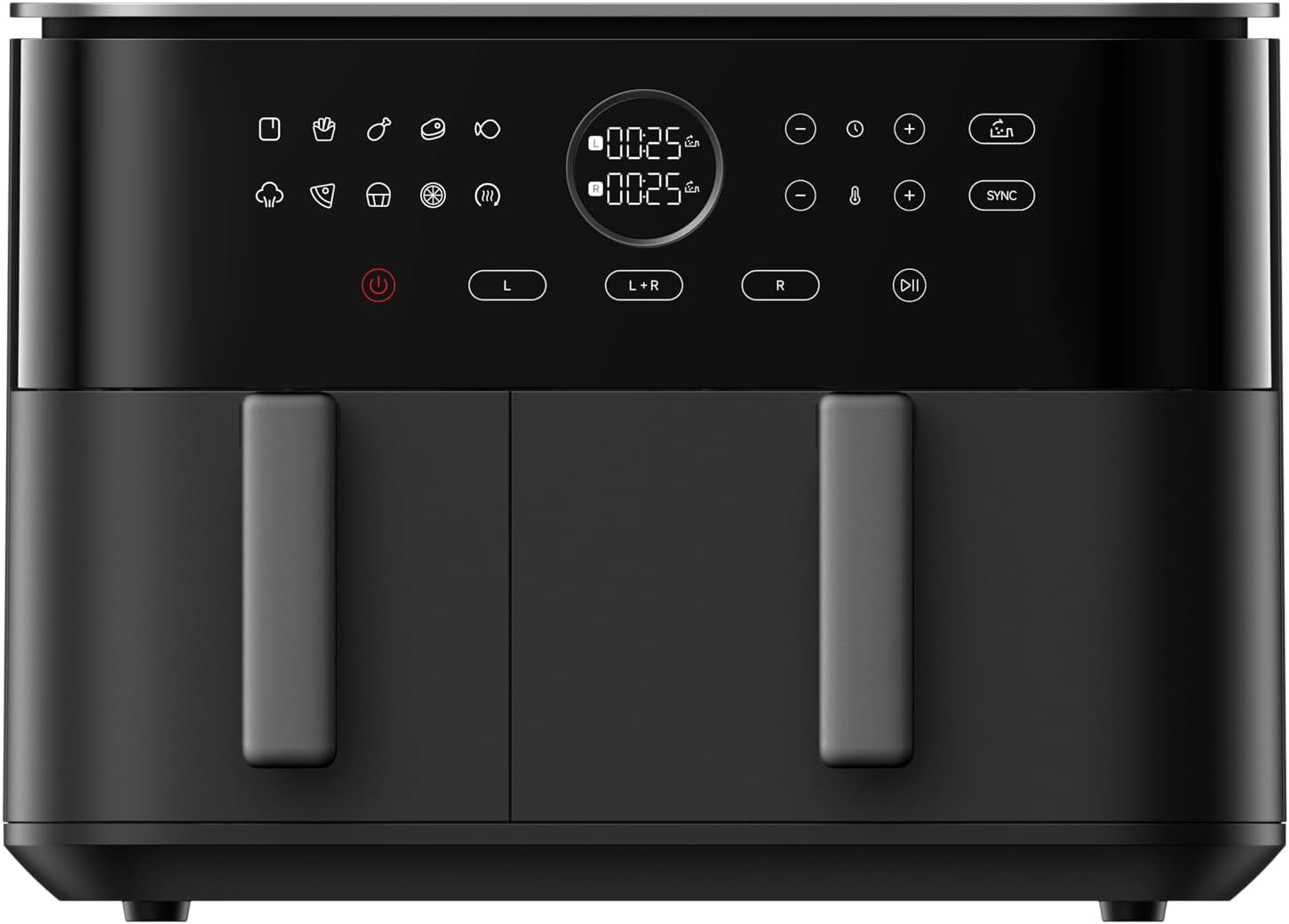 Чаши оснащены отдельными нагревательными элементами и работают независимо друг от друга. Панель управления позволяет установить оптимальные параметры для каждой зоны отдельно. В случае необходимости вы можете использовать одинаковые настройки и синхронизировать готовку с помощью кнопки SYNC — это означает, что обе корзины завершат приготовление одновременно, несмотря на разные настройки. Для более удобной очистки обе чаши пригодны для мытья в посудомоечной машине.
