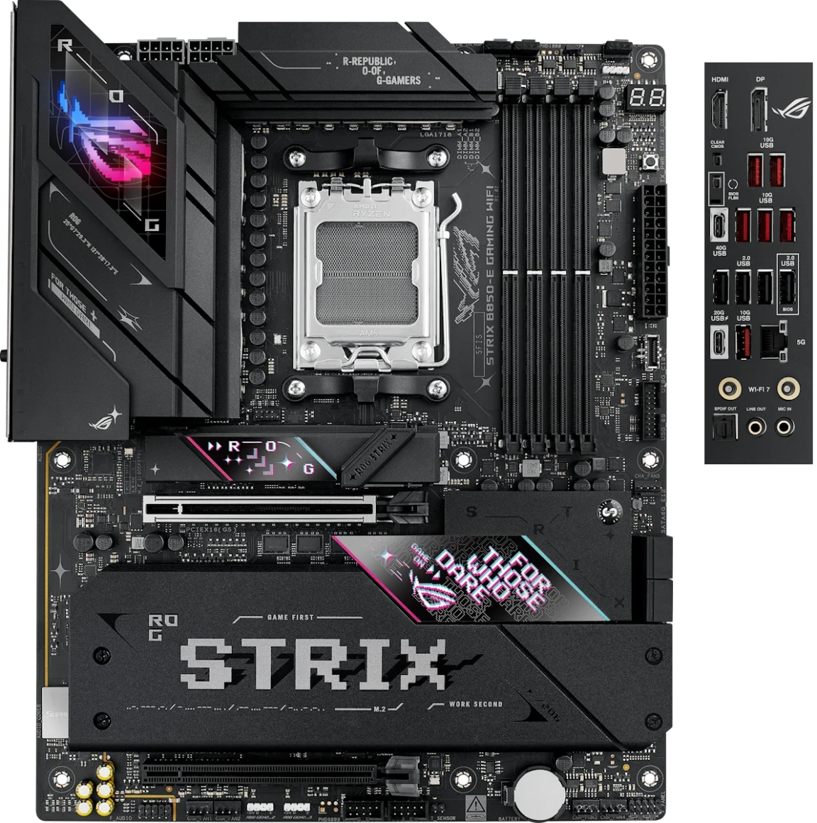 Материнская плата выделяется большим набором особенностей, которые пригодятся в повседневной жизни, работе и гейминге. Она соответствует концепции «All in One» и избавляет от необходимости покупки дополнительного оборудования. Компания предлагает трехдиапазонный модуль Wi-Fi 7 с шириной канала 320 МГц для достижения максимальной скорости трафика, которую могут предоставить современные роутеры и провайдеры. Версия Bluetooth 5.4 отличается стабильной синхронизацией и увеличенной пропускной способностью для передачи больших пакетов данных без потерь (например, несжатые форматы аудио). Также можно отметить сетевой порт LAN 5 Гбит/с для полноценного внедрения ПК в локальную инфраструктуру. Обмен данными с внешними накопителями выходит на новый уровень благодаря разъемам USB-C и USB4. Первый обладает скоростью 20 Гбит/с и технологией Power Delivery 3.0 30 Вт для зарядки гаджетов, а второй обзавелся поддержкой Alternate Mode и способен выводить видеосигнал на дополнительный монитор. В качестве бонуса производитель укомплектовал микросхему собственной аудиосистемой ROG SupremeFX, основанной на кодеке студийного уровня ALC4080, Hi-Fi усилителе Savitech и объемном звучании стандарта Dolby Atmos.