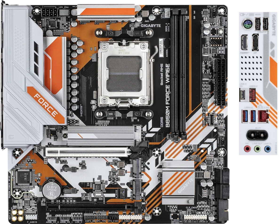 Материнская плата Gigabyte B850M FORCE WIFI6E позволяет собрать ПК среднего уровня для большого спектра задач. Она основана на чипсете B850M, в котором заложена поддержка современных стандартов и оборудования, выделяется необычным дизайном и доступной стоимостью. В схеме питания предусмотрено 12 отдельных линий, модуль стабилизации параметров тока для безопасной работы всех комплектующих. Однако необходимо учитывать ограничение при выборе процессора, связанное с единственным разъемом 8 pin для его энергоснабжения. Положительным моментов является фирменная технология X3D Turbo Mode, которая оптимизирует и увеличивает быстродействие ЦП примерно на 18%. Отдельное внимание производитель уделил ОЗУ, реализовав поддержку безопасного автоматизированного разгона до внушительной частоты 9600 МГц. Модель подойдет для мультимедийных задач, рендеринга, продвинутого гейминга в разрешении FHD, любых офисных процессов и коммерческой деятельности. Форм-фактор micro-ATX позволяет реализовать концепцию компактного ПК и дополнить его визуальными эффектами с помощью ARGB подсветки.