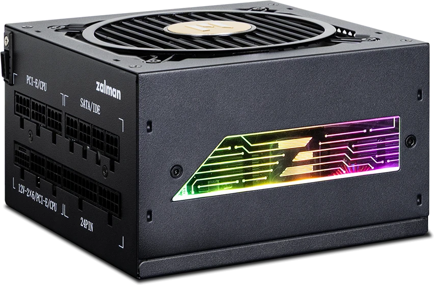 Zalman TeraMax II VIEW 1200W — южнокорейский блок питания больше киловатта, причем вся эта мощь передается по линии +12 В процессору и видеокарте (или нескольким). Соответствует стандартам ATX 3.1, PCIe 5.1, 80 PLUS Gold и Cybnetics Platinum. Первые два сертификата говорят о совместимости с NVIDIA GeForce RTX 5000, а остальные о высочайшем КПД 92%.