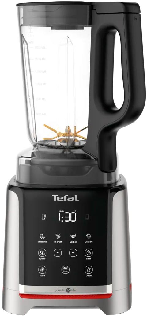 Стационарный блендер Tefal InfinyMix+ BL91HD31 относится к профессиональному оборудованию, о чем говорит ценник. Он разработан с акцентом на удобство эксплуатации и автоматизацию основных процессов. Мощный мотор 1600 Вт и стальной нож (6 лезвий) перерабатывают продукты любой твердости до однородной массы. При показателе 35 000 оборотов в минуту результат достигается в кратчайшие сроки. Модель легко справится с приготовлением сорбета, витаминных и протеиновых смесей, смузи и различных коктейлей, измельчением фруктов, овощей, орехов, колкой льда. Точная адаптация к различным ингредиентам и необходимому результату осуществляется за счет 10 скоростей и предустановленных режимов. Также присутствует импульсная переработка, система самоочистки, таймер отключения.