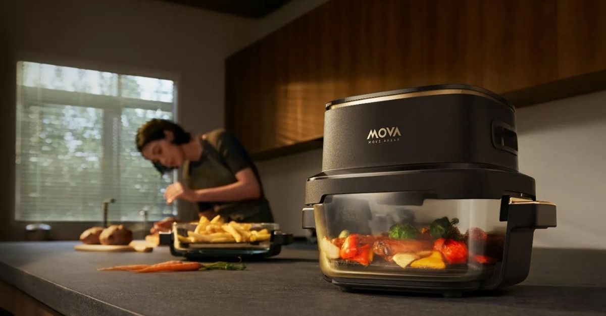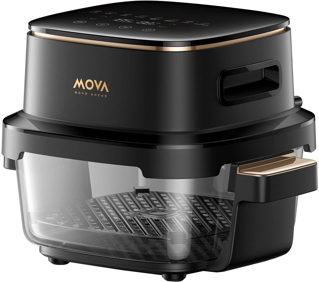 Стильный дорогой дизайн, качественное оснащение и продвинутые возможности аэрогриля бренда Mova свидетельствуют о том, что перед нами техника высокого уровня, которая станет украшением кухни и надежным помощником в готовке. Внутри установлен бесщеточный двигатель мощностью 1700 Вт, обеспечивающий быструю циркуляцию горячего воздуха и равномерное приготовление продуктов — блюда остаются сочными внутри и получают хрустящую корочку снаружи. Устройство универсально и позволяет готовить практически любую пищу: мясо, рыбу, овощи, картофель фри, выпечку и т. д. И все это без лишнего шума и в достаточно компактных размерах.