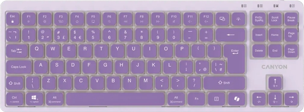 Типоразмер TKL 87% подразумевает привычное расположение всех клавиш, кроме калькулятора справа. Что позволяет печатать на клавиатуре даже в очень стесненных условиях, например, на журнальном столике. Дополнительно реализованы мультимедийные горячие клавиши для регулировки яркости подсветки, громкости музыки и прочих часто используемых функций Windows или macOS.