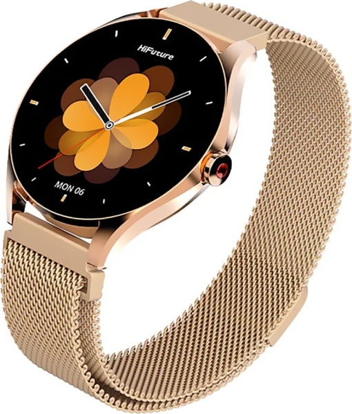 HiFuture Aura 2 — элегантные наручные часы с круглым экраном AMOLED 1.3 дюйма и ремешком из нержавеющей стали цвета Rose Gold. Экран покрыт устойчивым к царапинам стеклом с легкой выпуклостью, как у классических механических часов со стрелками. Внутри находится мощный, но при этом энергоэффективный процессор Dual Core, благодаря чему батарея держит до 7 дней.