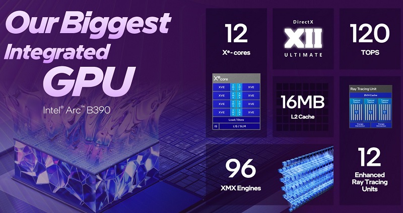 Arc 140V стал символом новой философии Intel «максимум производительности на каждый ватт». Данный GPU был создан для тончайших ультрабуков с процессорами Core Ultra 2 (Lunar Lake) , которые должны работать от батареи весь день, но при этом позволять владельцу запустить вечером что-то серьезное. А одной из главных особенностей стала распаянная на подложке процессора память LPDDR5x, которая убрала лишние задержки и позволила встроенной графике работать на пике возможностей.