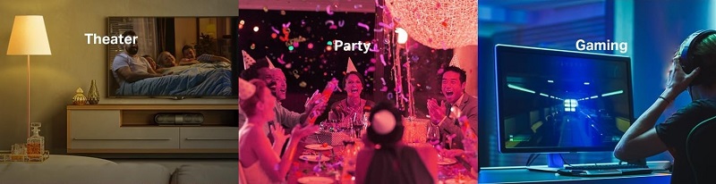 Самая популярная маркетинговая фишка — RGB-подсветка. Да, возможность сделать комнату фиолетовой или зеленой звучит весело, но большинство пользователей через неделю возвращаются к обычному теплому или нейтральному свету. Цветные режимы чаще используются в декоративной подсветке — например, на полках или в игровой зоне.