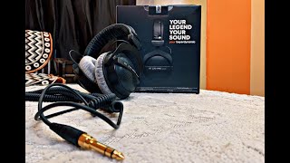 Наушники оцениваю со стороны игры на электрогитаре. Удобная посадка, большие и очень мягкие амбушюры, можно долго заниматься работой и голова в них не устанет. Длинный провод позволяет откатиться от стола и играть на инструменте, провод не натянется. На моделях DT 770 PRO с сопротивлением 250 Ом провод отличается, он витой. Достаточная чувствительность 96 Дб для наушников с сопротивлением 80 Ом легко прокачиваются звуковыми USB картами и смартфонами, у меня Steinberg UR22mkII. Характеристика не ровная, с некоторыми особенностями, не путать с недостатками, так как каждый бренд вносит свой окрас. Мой обзор с характеристиками, смотри на Youtube: Теперь хочу Beyerdynamic DT 1990 PRO) |