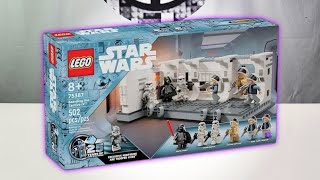 Конструктор Lego Boarding the Tantive IV 75387 позволяет воссоздать один из коридоров корабля Тантив IV, в котором Дарт Вейдер сталкивается с повстанцами. Сборка выполнена в виде диорамы, которая состоит из серой платформы-основы и участка белой стены с двумя дверями. Ее размеры составляют: 8 см в высоту, 22 в ширину и 13 в длину. На полу сборки предусмотрено множество точек крепления для мини-фигурок (Дарт Вейдер, 2 имперских штурмовика, солдат-клон, Реймус Антиллес и 2 десантника повстанцев).