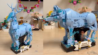 Олень Патронус имеет настраиваемые ноги, полупрозрачные светло-голубые элементы, придающие ему призрачный внешний вид, и интегрированную подставку с декоративными деталями и местом для минифигурки Гарри Поттера. Из тех же деталей можно собрать модель волка Патронуса и подставку для минифигурки Ремуса Люпина. Конструктор рассчитан на пользователей в возрасте от 12 лет и может хорошим подарком на любой праздник.