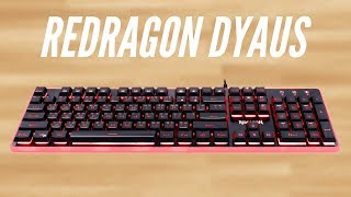 Позиционируется как продукт базовой ценовой категории, ориентированный на широкий круг любителей ПК-гейминга, желающих приобрести простую, малошумящую и надежную игровую клавиатуру без переплаты за раскрученную торговую марку. Клавиатура Redragon Dyaus оборудована 104 клавишами, в число которых входит полноценный цифровой блок, малый Enter, два широких Shift-а и длинный Backspace.