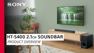 Саундбар Sony HT-S400 — это решение среднего уровня, представленное на рынке 2022 году и ориентированное на пользователей, желающих улучшить звук телевизора с диагональю около 43 дюймов без необходимости в покупке и установке сложной многоканальной системе. Акустика построена по схеме 2.1 и включает в себя основную панель с двумя динамиками, а также беспроводной сабвуфер фазоинверторного типа с 160-миллиметровым НЧ-драйвером и мощностью 130 Вт.