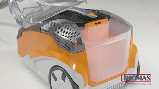 Универсальный безмешковый пылесос от популярного немецкого бренда Thomas, который с одинаковой эффективностью обеспечит как сухую, так и влажную уборку помещений. Прежде всего это изделие рекомендовано для пользователей, которые склонны к легочным заболеваниям, астме, имеют маленьких детей или содержат в квартире домашних животных. В основе техники находиться специальный фильтр Aqua-Box, который и обеспечивает максимально эффективное отделение пыли и различных загрязнений из потоков всасываемого воздуха; дополнительно предусмотрен популярный фильтр тонкой очистки НЕРА 13-го класса.
