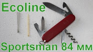 Клинок имеет традиционную для «швейцарца» форму и характерную выемку для открытия. Рукоятку покрывают пластиковые вкладыши красного цвета с узнаваемым фирменным логотипом. Швейцарский нож Victorinox Sportsman предполагает 9 дополнительных функций. Так, тут имеется штопор и обычная открывалка, что позволит откупорить как бутылку вина, так и емкости с другими напитками. Помимо этого есть консервный нож, востребованный в походах, шлицевая отвертка и стриппер для мелких ремонтных работ, полезные в быту принадлежности, такие как пилка для ногтей, зубочистка и шило-швайка. Отдельного упоминания заслуживает действительно компактные размеры модели: длина в сложенном виде составляет всего 84 мм, а значит многофункциональное изделие почти наверняка поместится в любом кармане одежды.